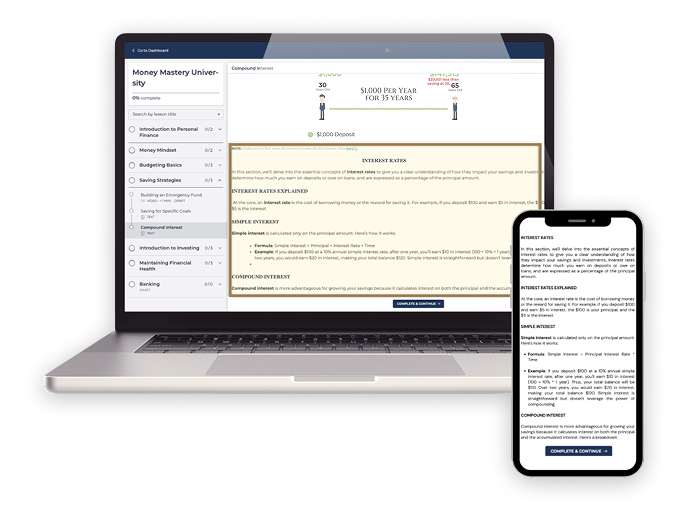 Comprehensive written content accompanies every lesson, reinforcing key lessons, providing deeper explanations, and ensuring students fully grasp important financial principles.
