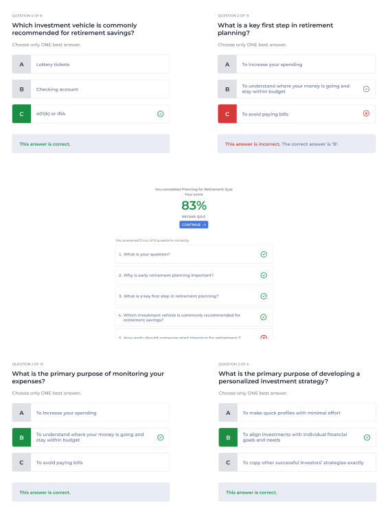 Professionally crafted exercises and projects that help students apply what they’ve learned through critical thinking and real-world financial decision-making.